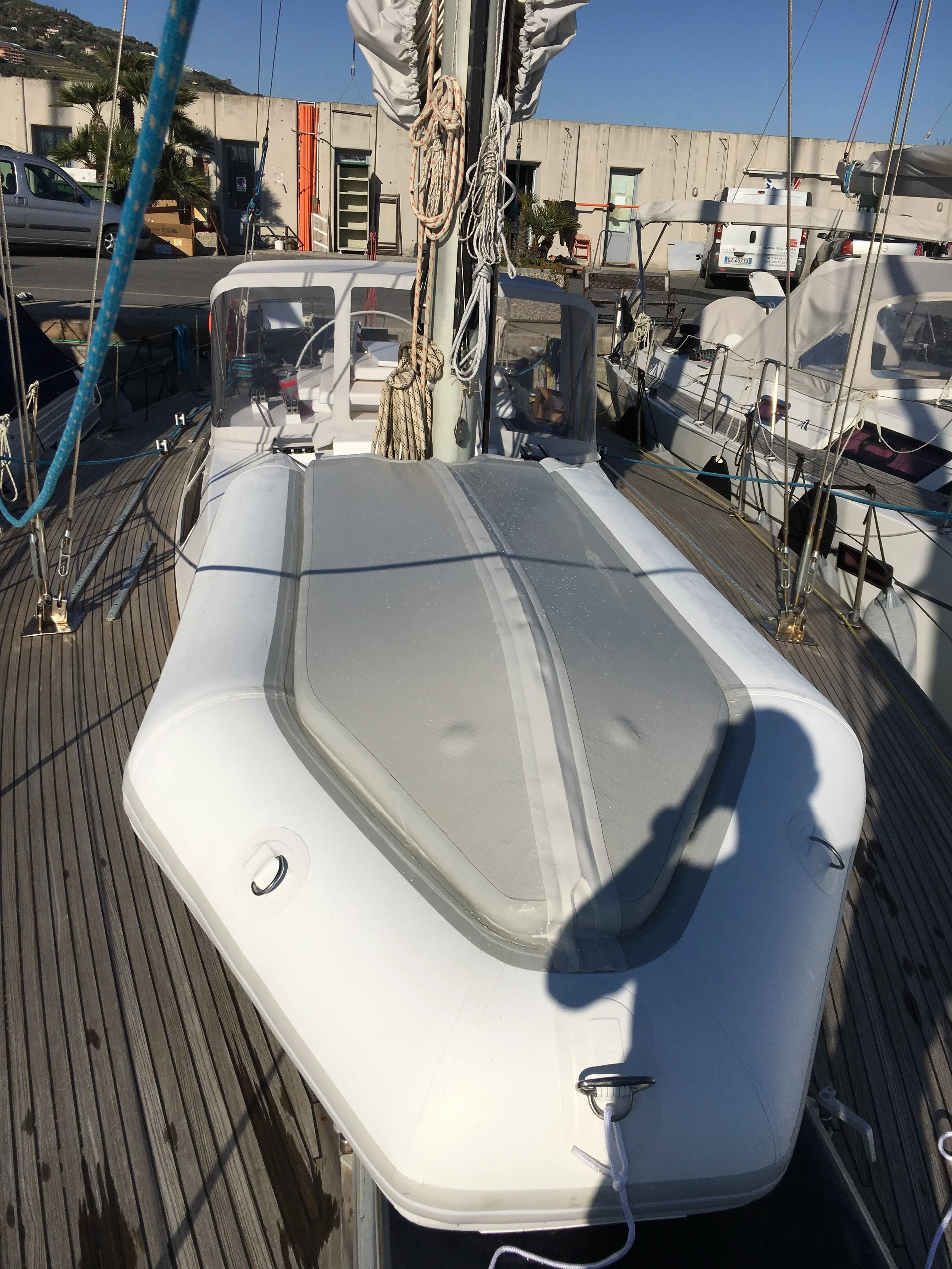 Spray-Hood in pozzetto, Bimini timoneria e tendalini para-sole/pioggia per coperta. Pannelli fotovoltaici per auto-produzione energia necessaria. Cuscineria da esterno. Tender con remi e motore fuoribordo elettrico. Ancora mod. "Delta" con salpa-ancora elettrico. Tavolo pieghevole in pozzetto. Scaletta esterna per risalita dall'acqua. Amaca.